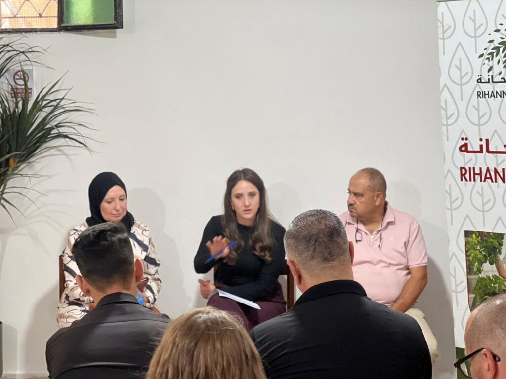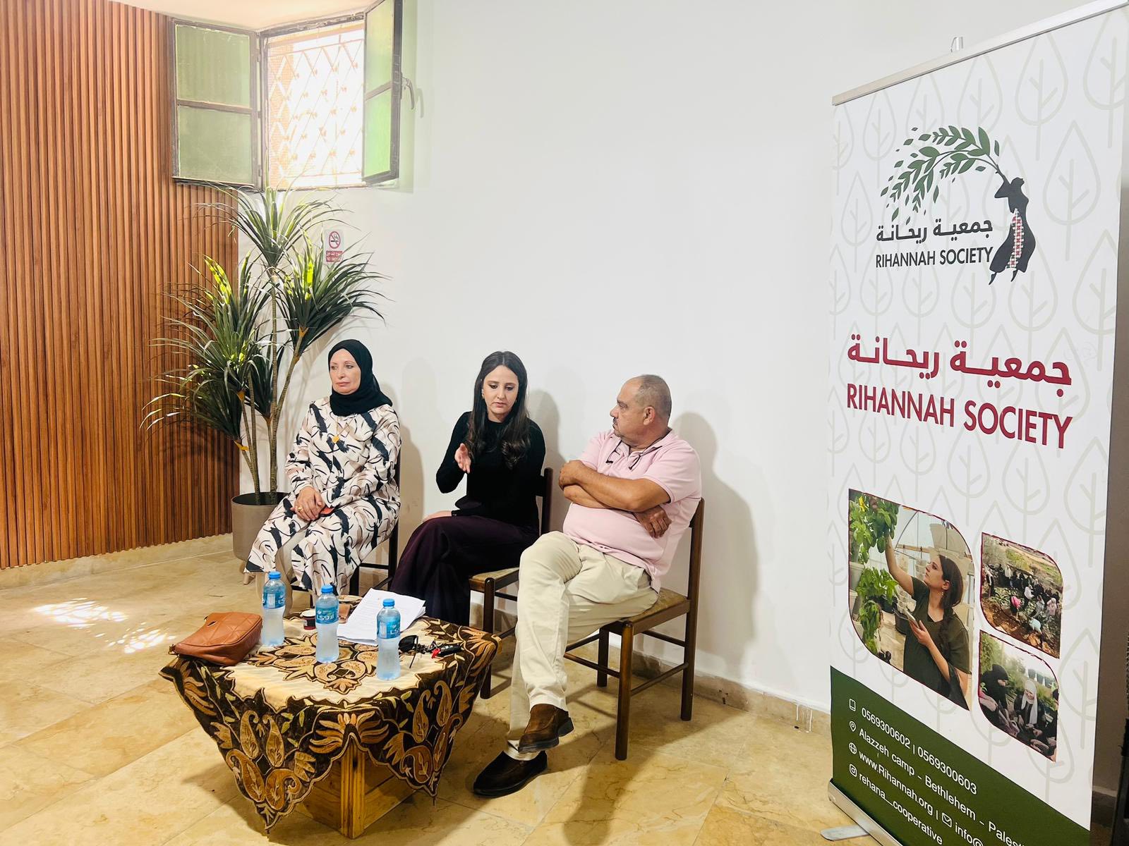 نظّمت جمعية ريحانة، بالشراكة مع مؤسسة دالية المجتمعية، ورشة حوارية جمعت فاعلين وفاعلات من التعاونيات الزراعية، بحضور رسمي من هيئة العمل التعاوني ممثلة بالسيد إسماعيل سباتين، ومشاركة السيدة مها البطمة عن تعاونية بتير الزراعية، إلى جانب مبادرات شبابية ونسوية من محافظتي بيت لحم والخليل.